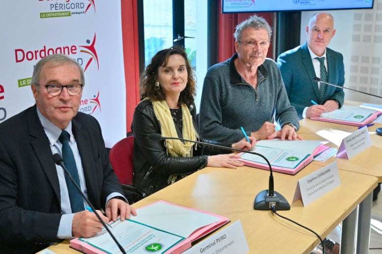 Le vendredi 10 octobre 2025, Germinal Peiro, le président du Conseil départemental de la Dordogne, ainsi que la directrice de la Caisse primaire d’assurance maladie de la Dordogne Delphine Camblanne, et le directeur départemental de l’Agence régionale de santé Nouvelle-Aquitaine, Didier Couteaud, ont signé le Plan départemental santé environnement « zéro perturbateurs endocriniens » .
