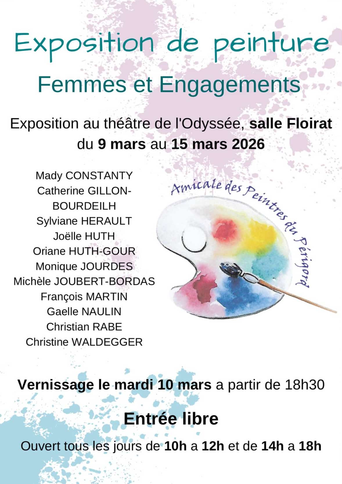 Pour la 17ème édition du Mois des droits des femmes organisé par la Ville de Périgueux, l’association Amicale des Peintres du Périgord organise une exposition au Théâtre l’Odyssée du lundi 9 au samedi 15 mars 2026.
