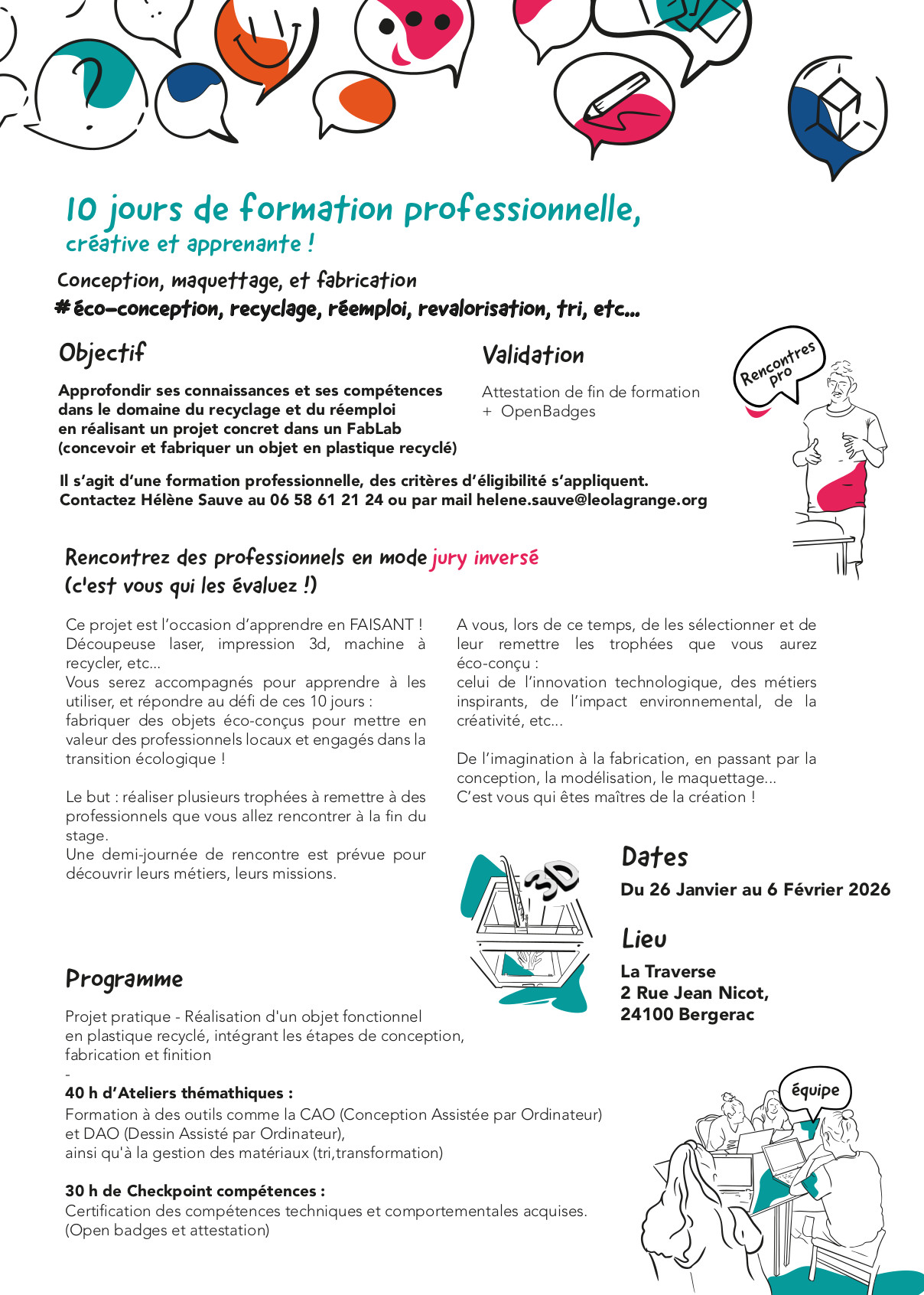 Dans cet enregistrement Alexandre Licata, Designer Responsable au FabLabs Cap Sciences et Eric Piboyeux Directeur d’activité chez Léo Lagrange formation nous détaillent le déroulé des deux stages de 10 jours en immersion au FabLab à La Traverse à Bergerac :