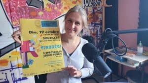 Emilie Dussarat au nom des organisateurs du festival présente le programme dans les studios de RLP.